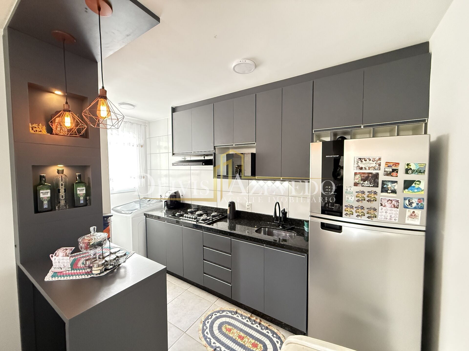 Detalhes – Apartamento já com cozinha planejada, cooktop e depurador de ar. Condomínio conta com piscina, salão de festas, quadra, playground, churrasqueira, porteiro 24h, estacionamento coberto, minimercado.